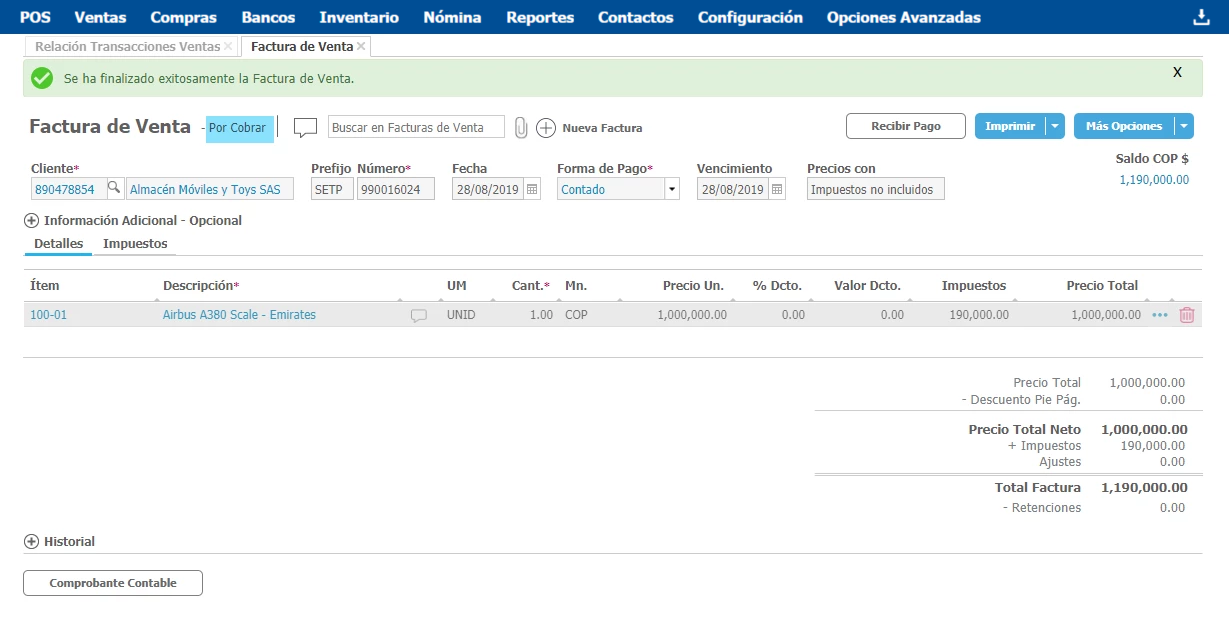 Al tramitar una factura de venta recuerda que esta se presenta con estado En Proceso, con esta versión de facturación al dar clic en Finalizar la factura pasará a estado En Validación.