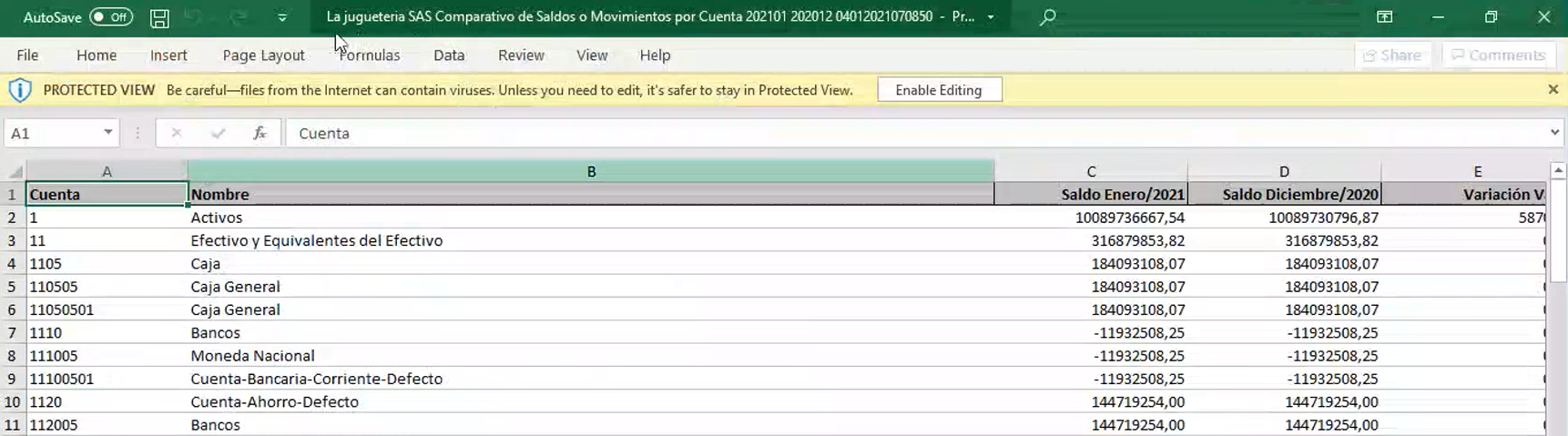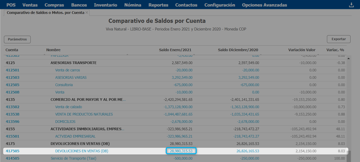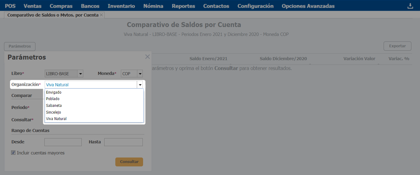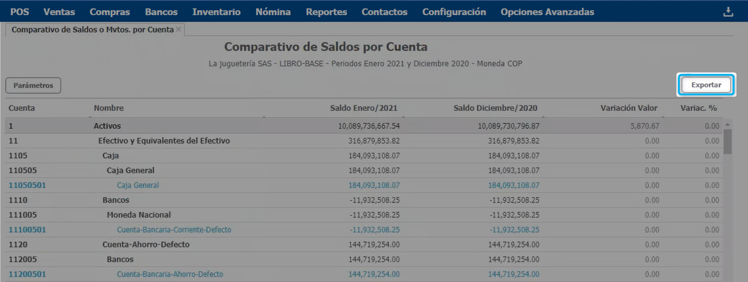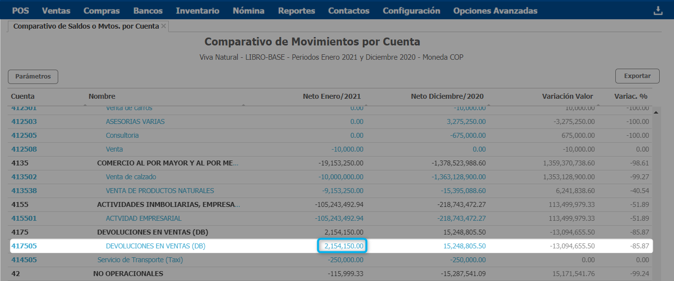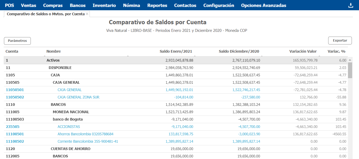Informe comparativo de saldos o movimientos por cuenta - Loggro Pymes