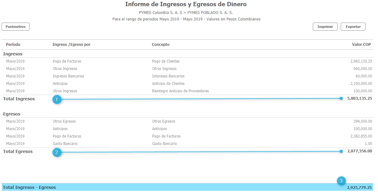 Informe de ingresos y egresos - Loggro Pymes