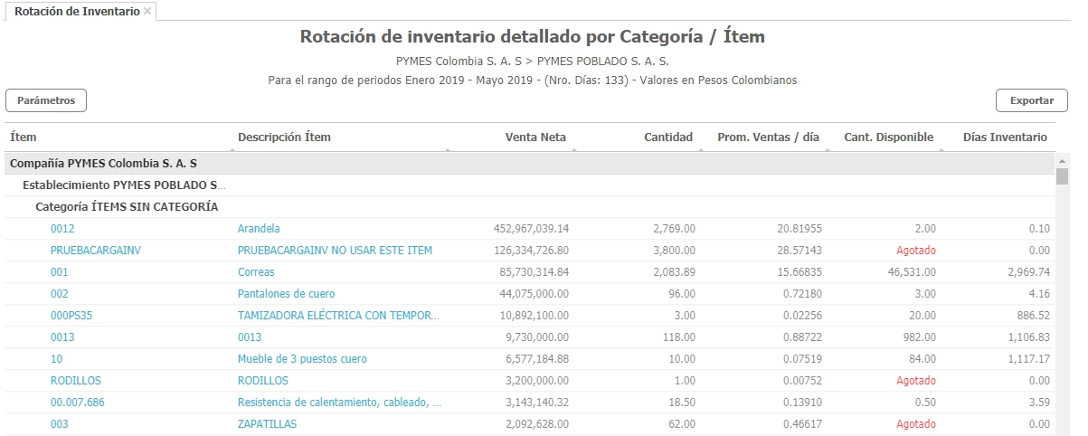 En Loggro podrás conocer el comportamiento y el estado que tienen los ítems en el inventario, con ayuda del reporte de rotación de inventario tendrás información de las cantidades disponibles en inventario, las ventas netas que ha tenido los ítems y los días que tarda en inventario.