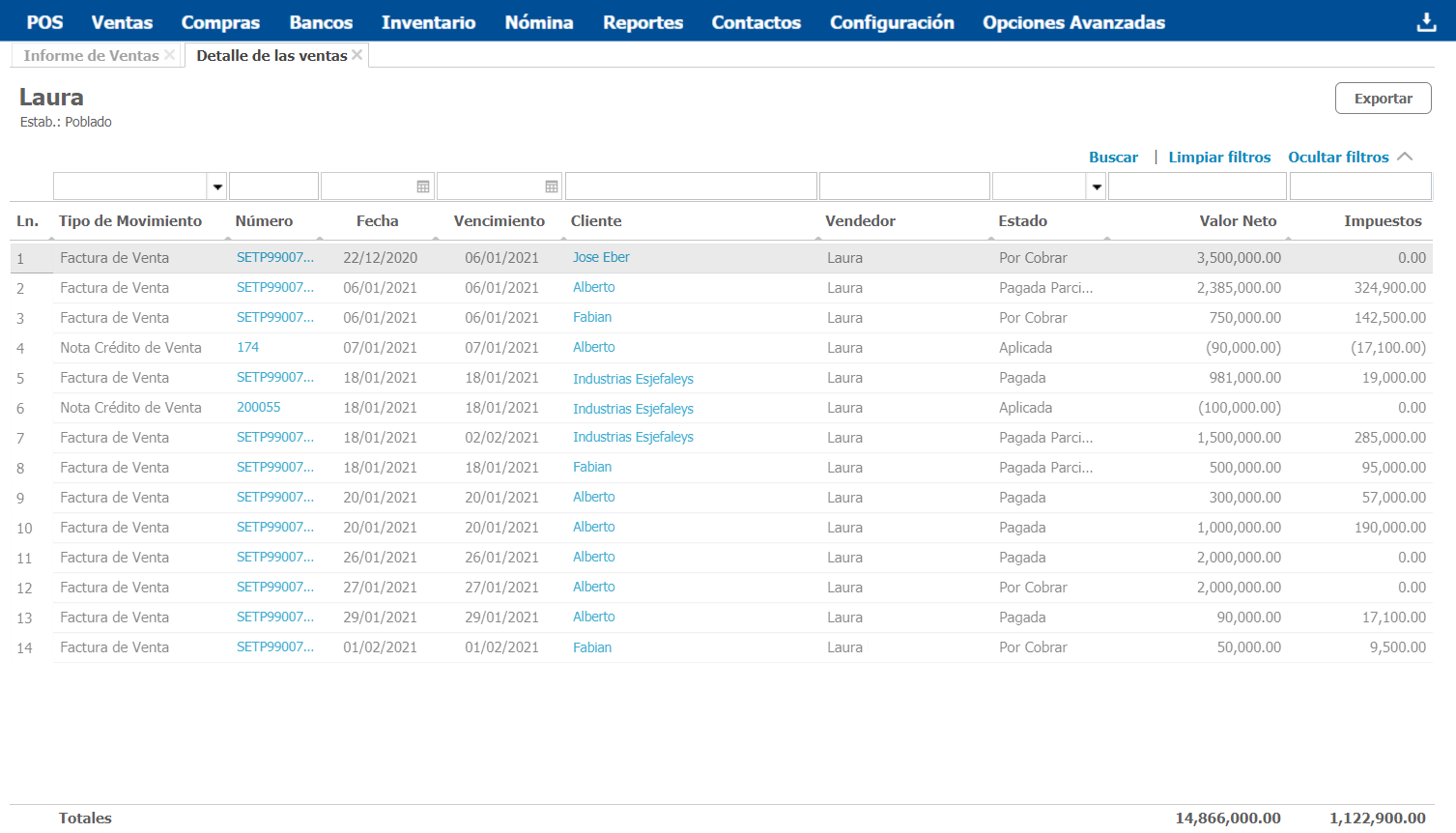 - Así de fácil podrás conocer los detalles de las ventas y devoluciones realizadas en tu compañía.