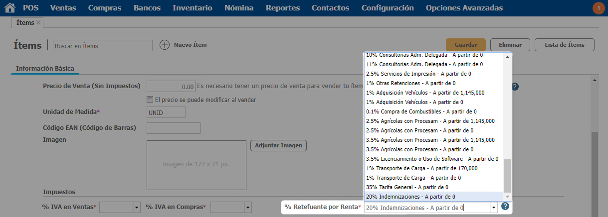 Ahora en Loggro puedes encontrar la tarifa de retención en la fuente del 20% Indemnizaciones.
